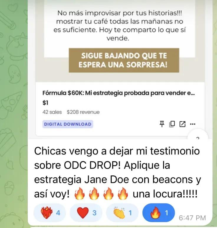 "Apliqué la estrategia Jean Doe de ODC Drop con beacons y🔥🔥🔥 una locura, 42 ventas en 24 horas!!!