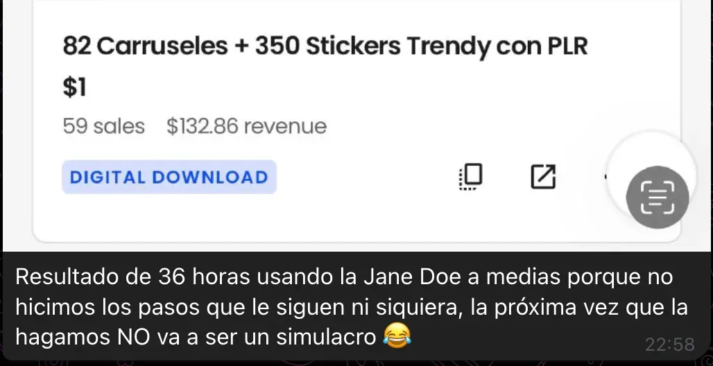 Ojalá hubiese conocido esta estrategia antes! Tanta gente que se ha salido y ha dejado de creer en los productos digitales tratando de vender cursos high tickets sin experiencia en redes!! Cuando pudieron haber hecho sus primeros dólares con esto!"